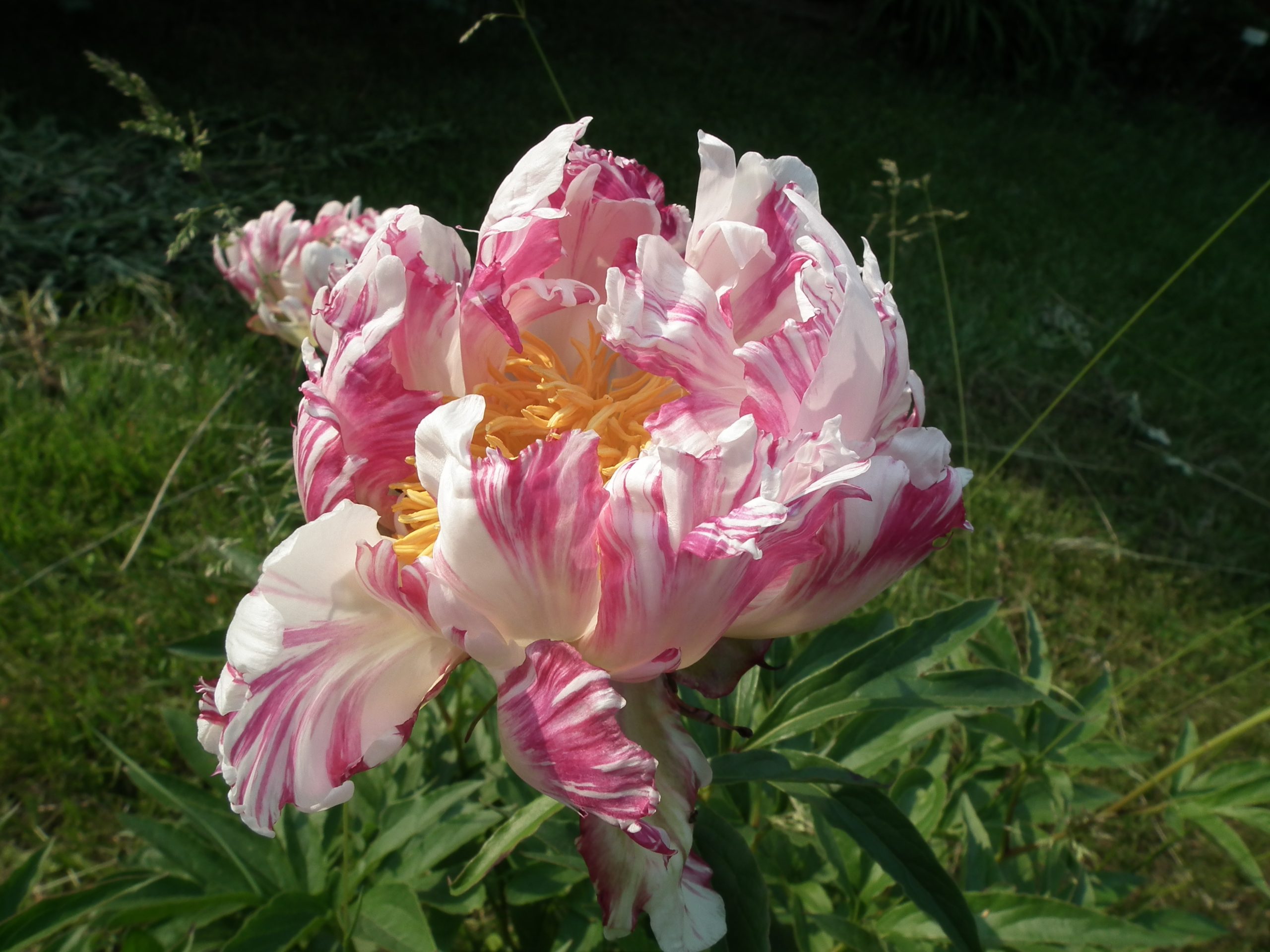 Twisted petals typical of the cactus type flowers. Cream with strikes of cherry. 28″ tall. Bare roots shipped in the fall with 3 to 5 eyes.